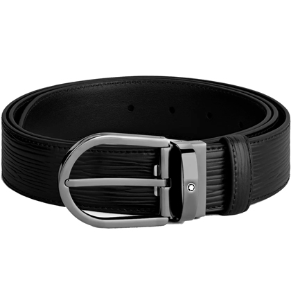 Черный кожаный ремень с подковообразной пряжкой 35мм от магазина премиальных ручек Premium Pens в Рязани.
